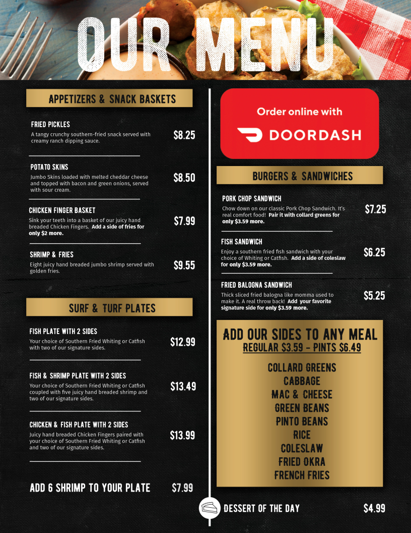 For those seeking a hearty meal, the Surf & Turf Plates are a standout. The Fish & Shrimp Plate, featuring hand-breaded shrimp alongside your choice of fish, offers a perfect balance of flavors. Dining here is an experience of taste that resonates deeply, as captured in one satisfied customer's review: "This is no ordinary mac and cheese... Soul food taken to the next level!"